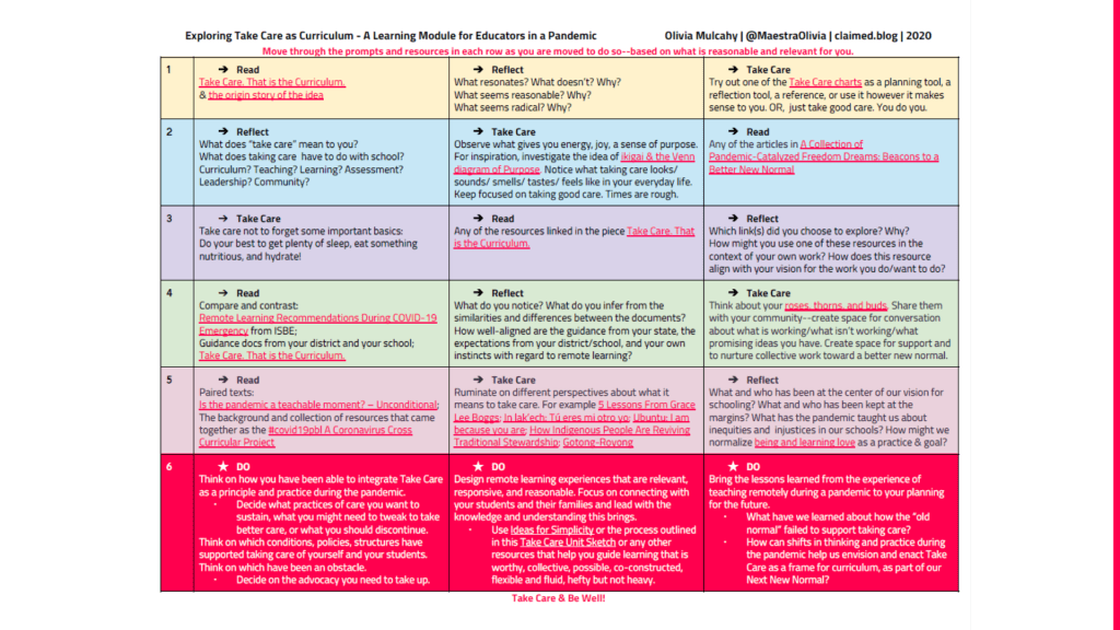 Exploring Take Care as Curriculum – A Learning Module for Educators in a Pandemic:
